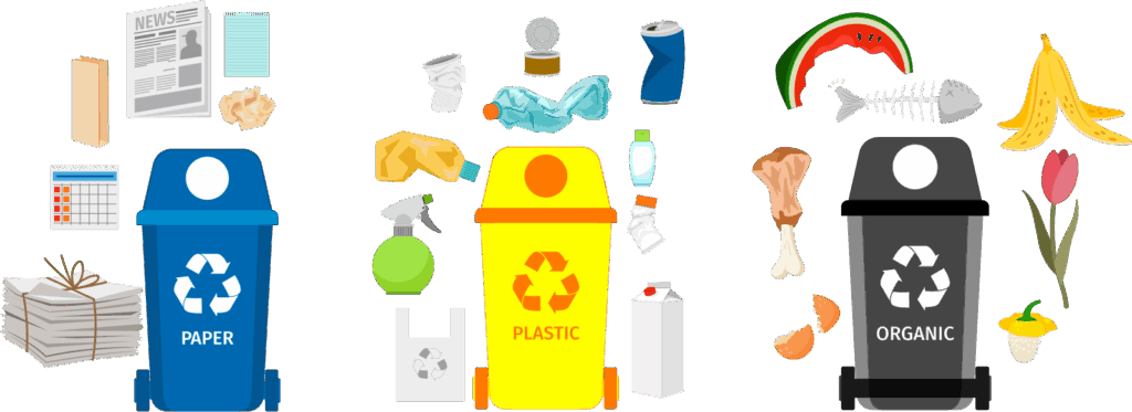 Bei den Garagen sind ebenfalls Abfalltonnen, diese sind nach Farben sortiert!