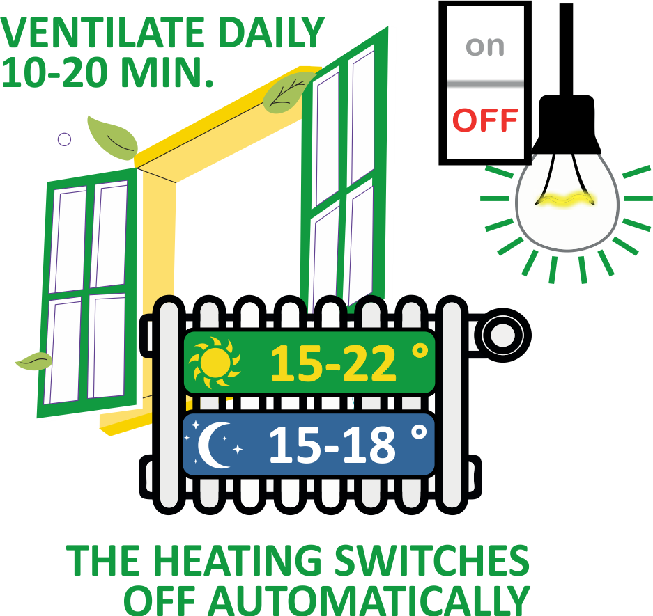 Ihr Umweltbeitrag beim Heizen, Lüften und Energie bei Uns: